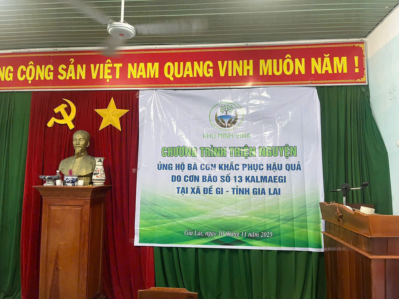Ngày 10/11/2025, Công ty TNHH Môi trường Phú Minh Vina đã tổ chức chương trình thiện nguyện tại xã Đề Gi, tỉnh Gia Lai nhằm hỗ trợ người dân khắc phục hậu quả do cơn bão số 13 – Kalmaegi gây ra.